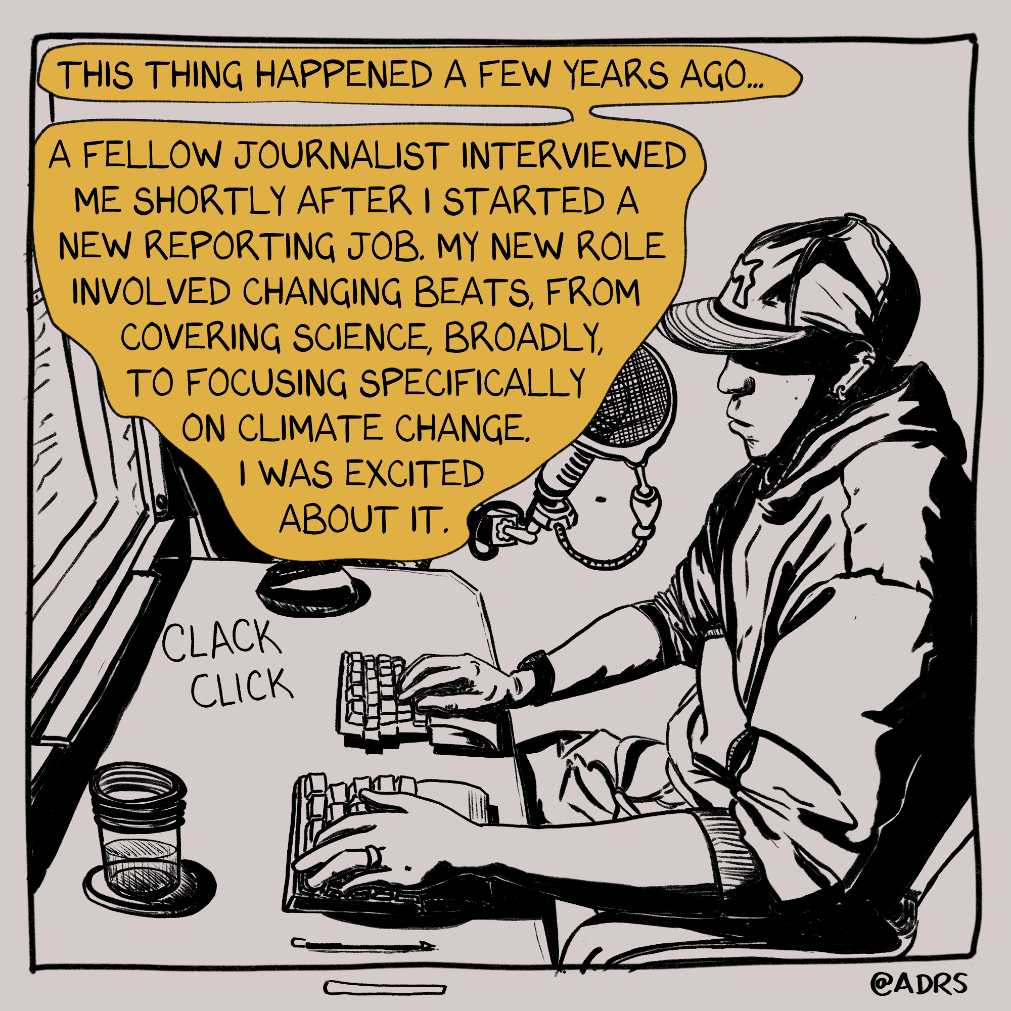 But recently, I've found myself thinking about what happened again, probably because the self-doubt I feel around making comics is similar to how I felt about making a move from writing about science for the web to being a climate correspondent on TV (on HBO!). So I made a comic about it.